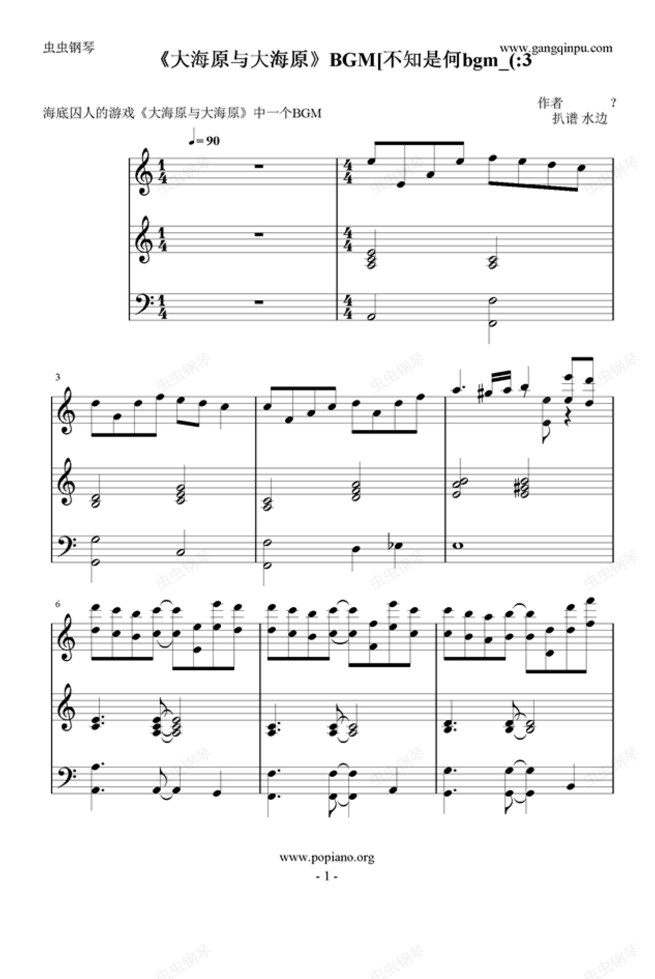 钢琴谱:《大海原与大海原》BGM[不知是何bgm