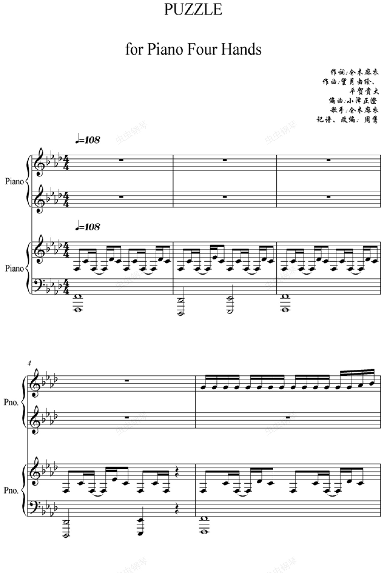 钢琴谱:名侦探柯南M13主题曲-PUZZLE (for Piano Four Hands)