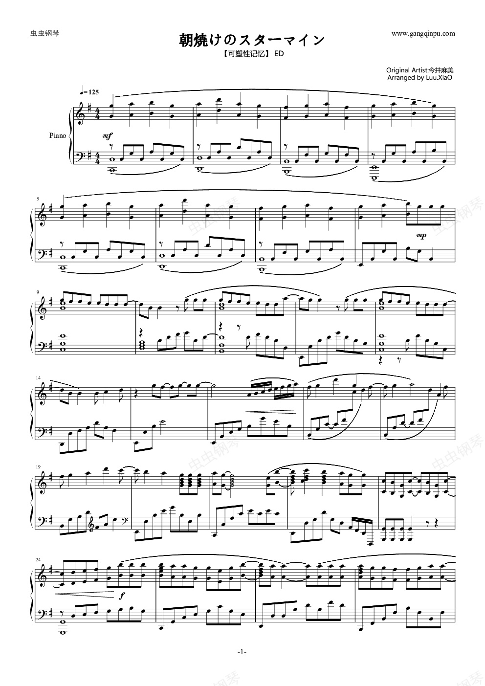 这次是我自己改编的版本了,难度适中,暂时还是TV版,以后我争取多写一些完整版的曲子吧~~~~