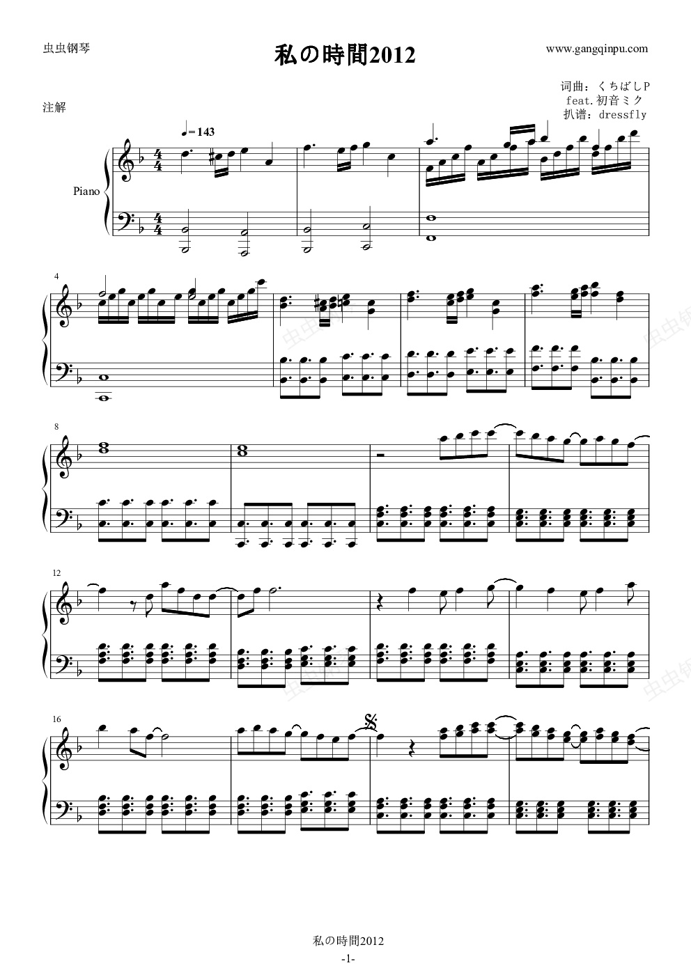 钢琴谱:私の時間2012