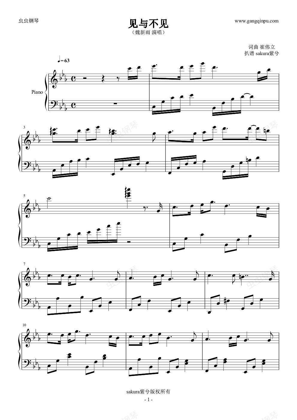 钢琴谱:魏新雨新曲《见与不见》