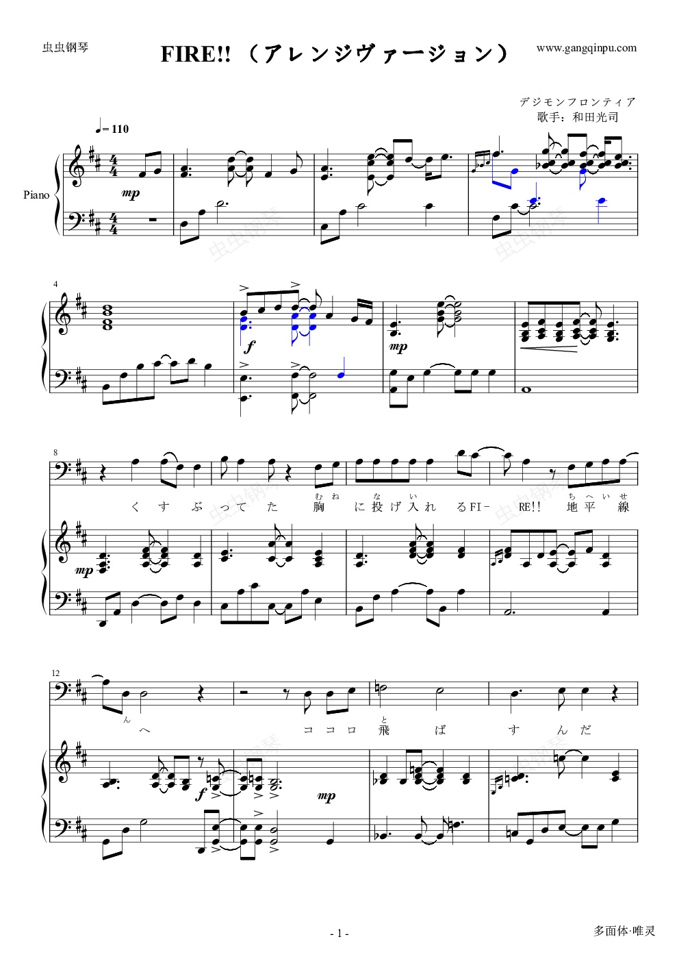 钢琴谱:数码宝贝:FIRE!!(钢琴版)(歌 + 伴奏)