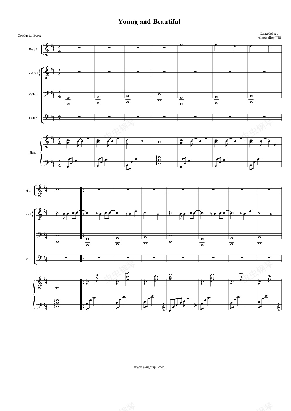 钢琴谱:Young and Beautiful(总谱)