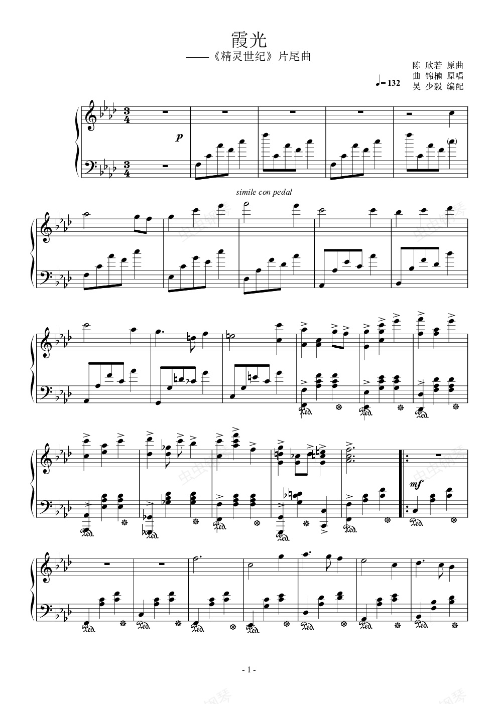 钢琴谱:(融合版)霞光