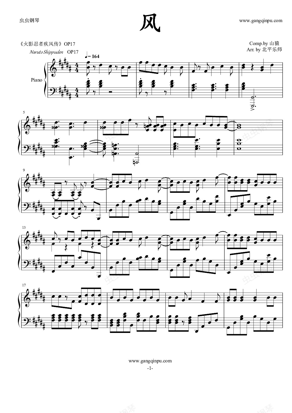 钢琴谱:火影忍者疾风传OP17《风》- 山猿