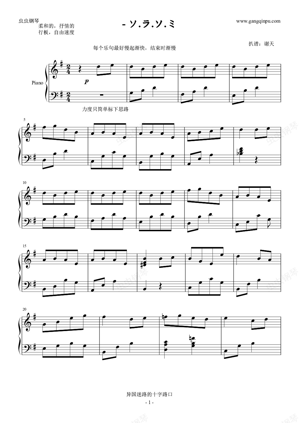 钢琴谱:- ソ.ラ.ソ.ミ 异国迷路的十字路口插曲