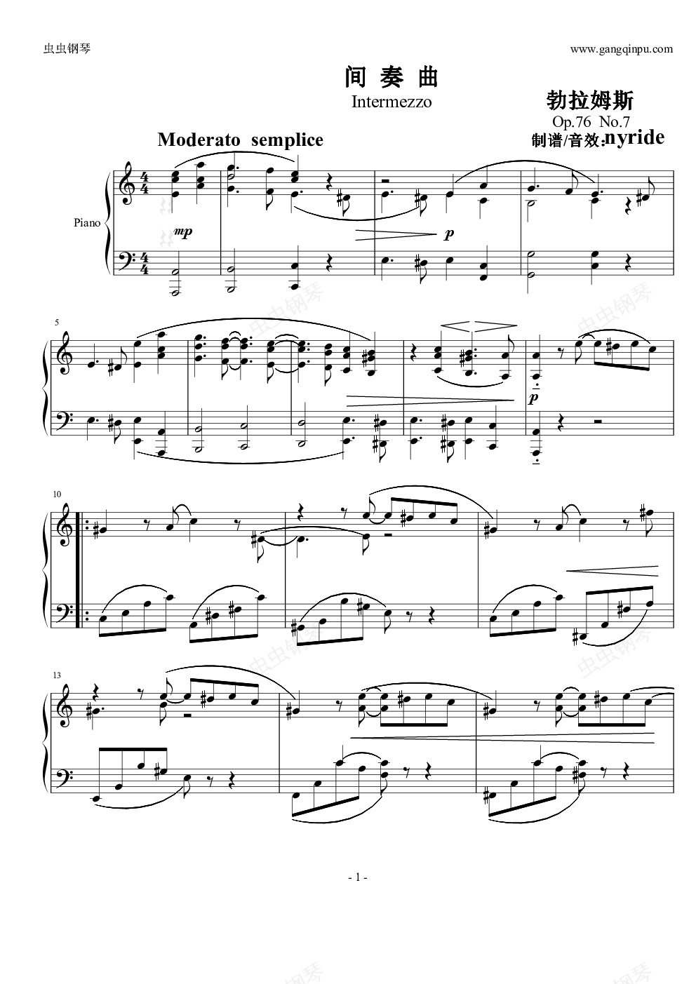 钢琴谱:勃拉姆斯《间奏曲》Op.76 No.7