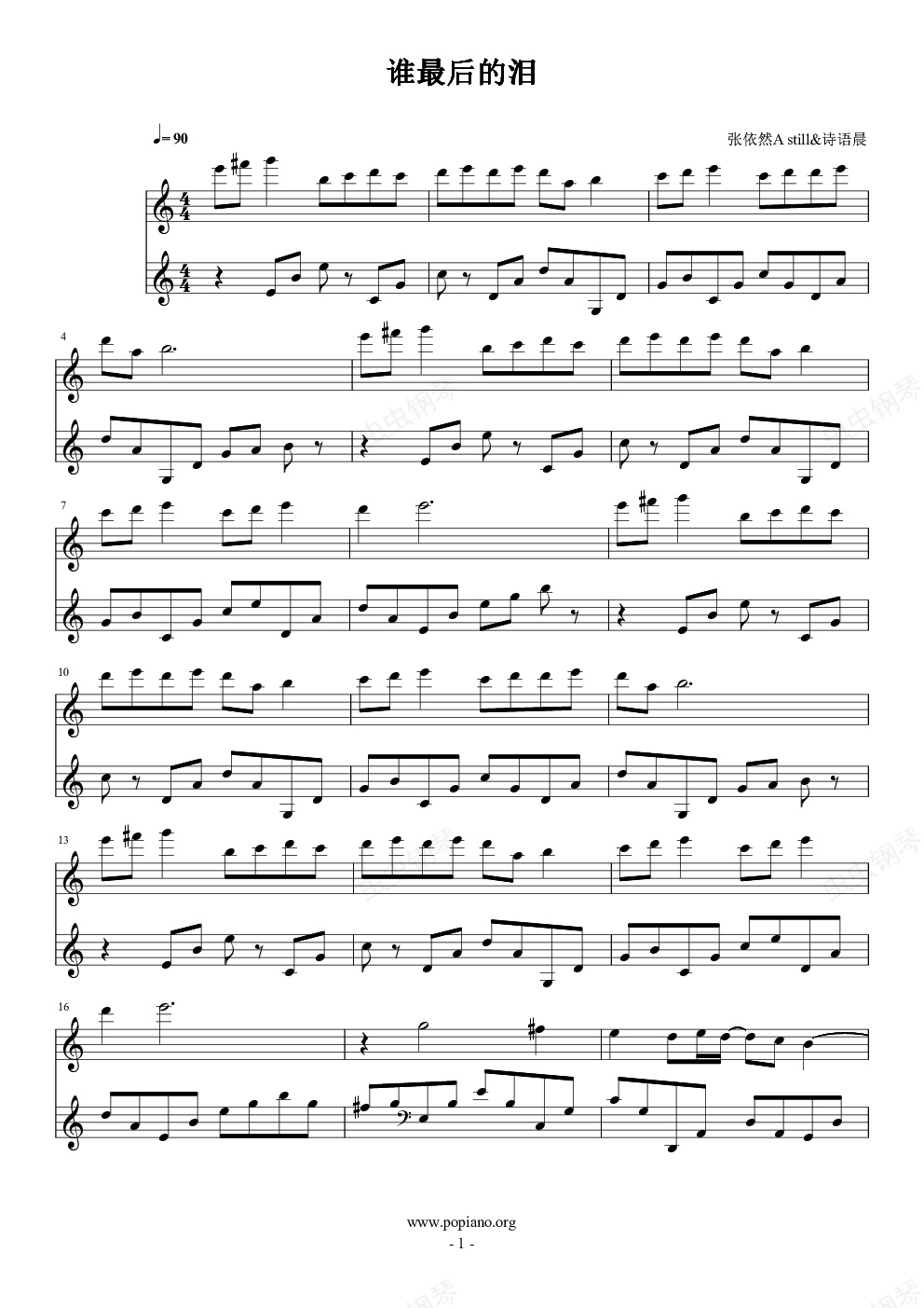 钢琴谱:谁最后的泪