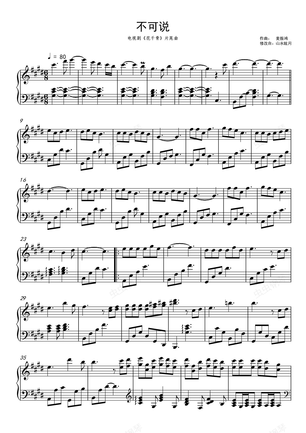 钢琴谱:不可说 - 电视剧《花千骨》片尾曲