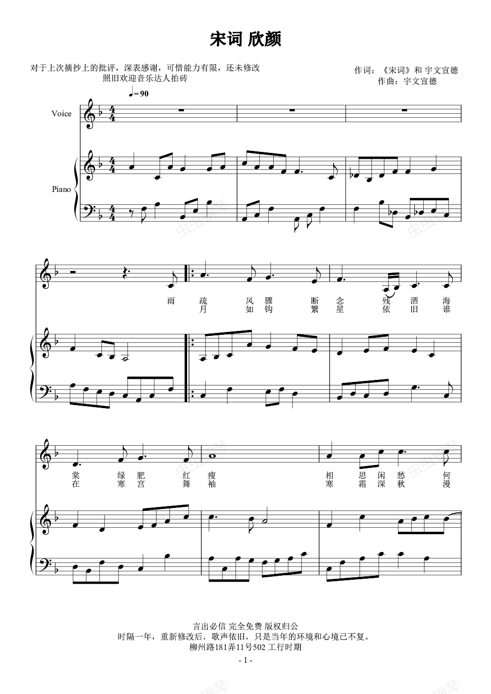 钢琴谱:23 宋词 欣颜