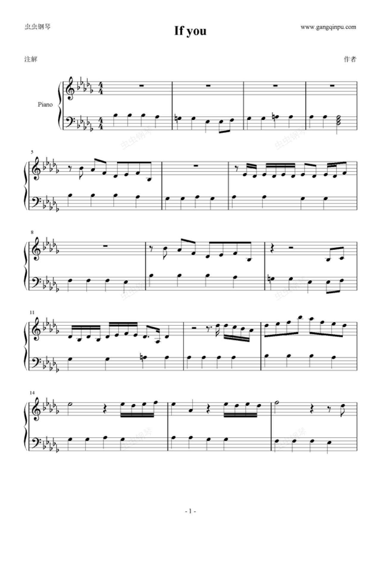 钢琴谱:If you