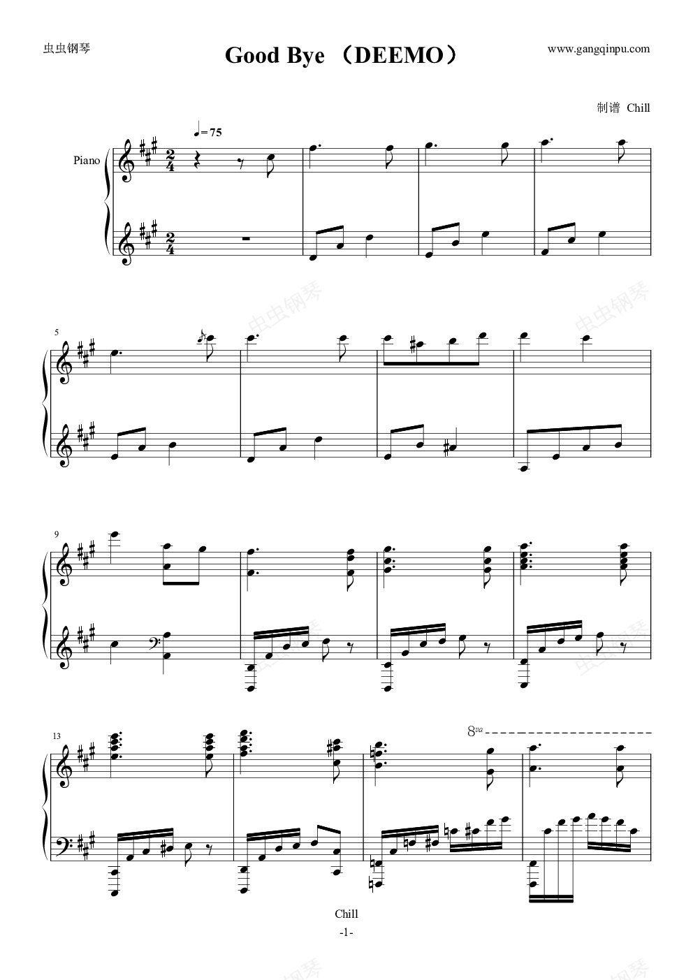 钢琴谱:goodbye(钢琴部分)-- DEEMO小女孩离开时的音乐