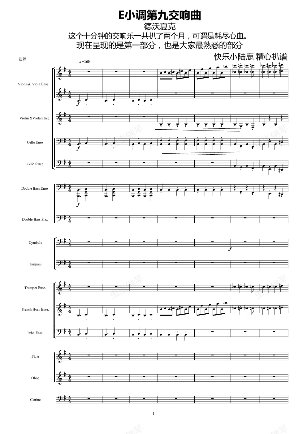 钢琴谱:E小调第九交响曲-乐团大总谱