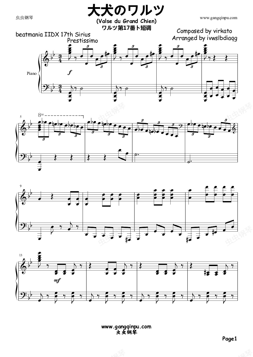 钢琴谱:ワルツ第17番ト短调 ‘大犬のワルツ’