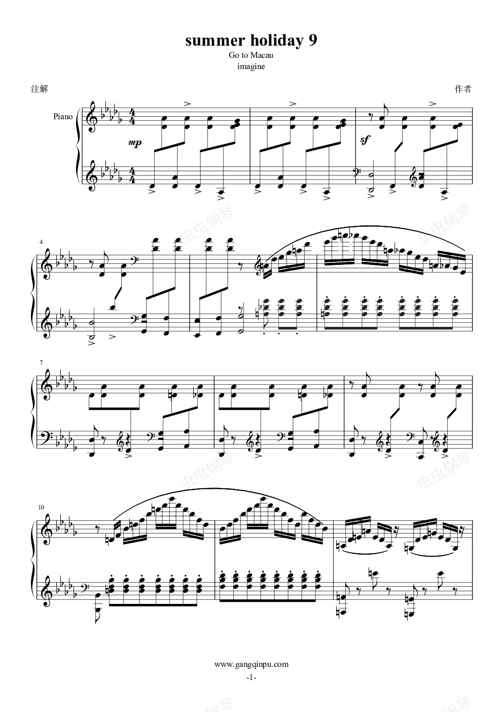钢琴谱:summer holiday 9
