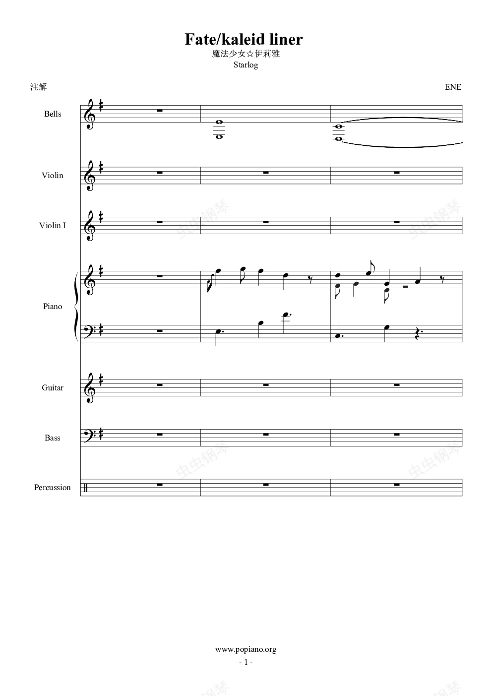 钢琴谱:【ENE】(总谱)魔法少女伊利亚op starlog