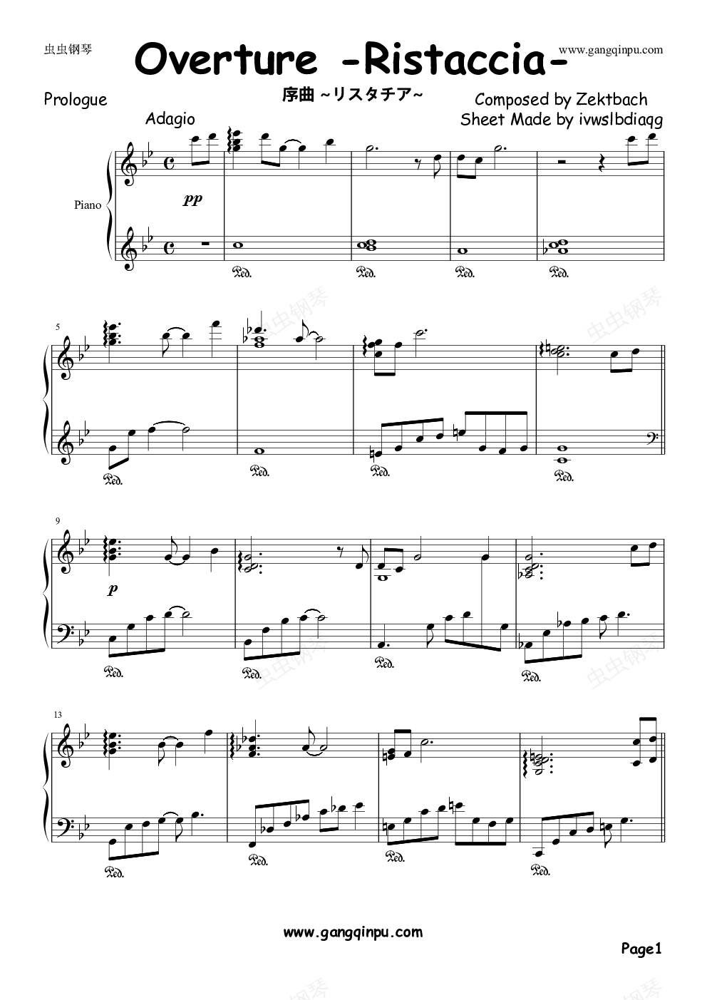 钢琴谱:Zektbach叙事诗-序章 Overture -Ristaccia-