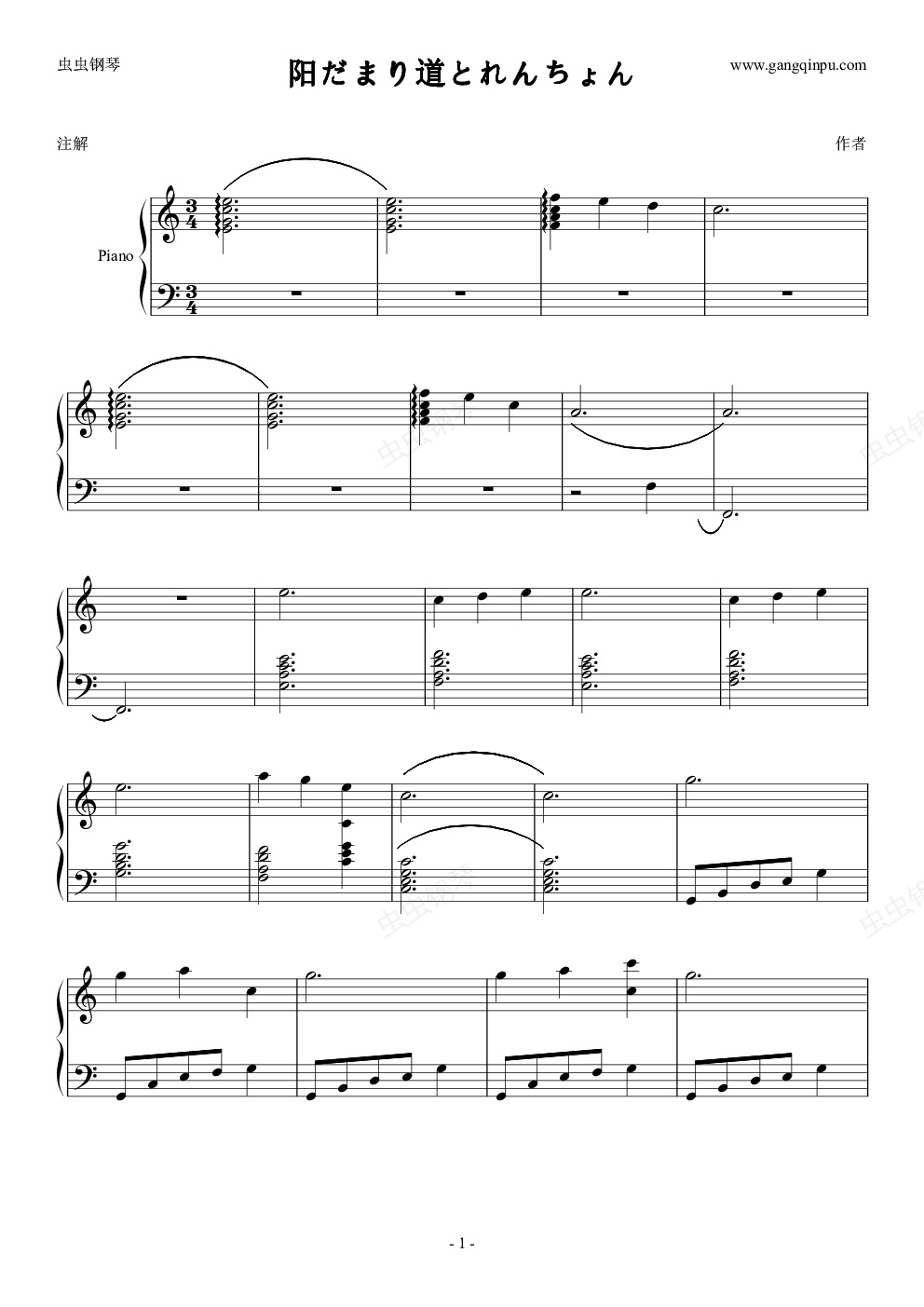钢琴谱:悠哉日常大王 阳だまり道とれんちょん
