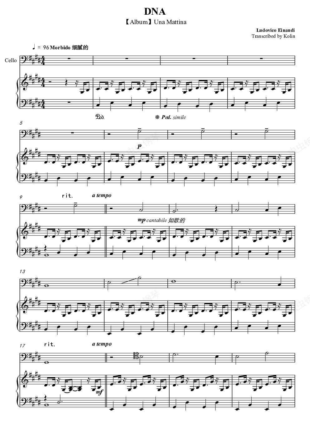 本次制谱作品为意大利著名钢琴作曲家的Una专辑中的曲目<>,专辑的剩余曲目后续会上传,请输入曲名搜索,希望能给大家带来精神享受。