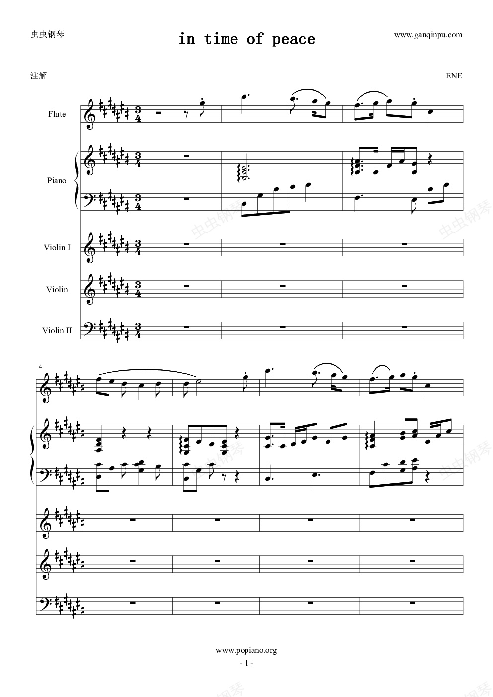 钢琴谱:【ENE】(总谱)刀剑神域ost in time of peace