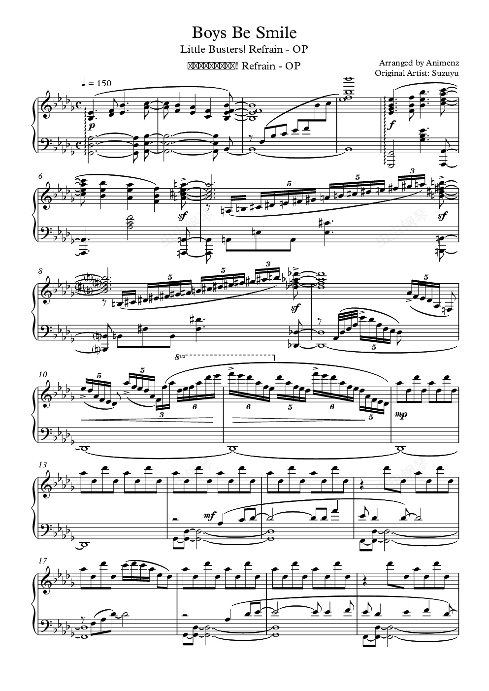 【】琴谱搬运 - Boys be Smile 《! ~~》OP
