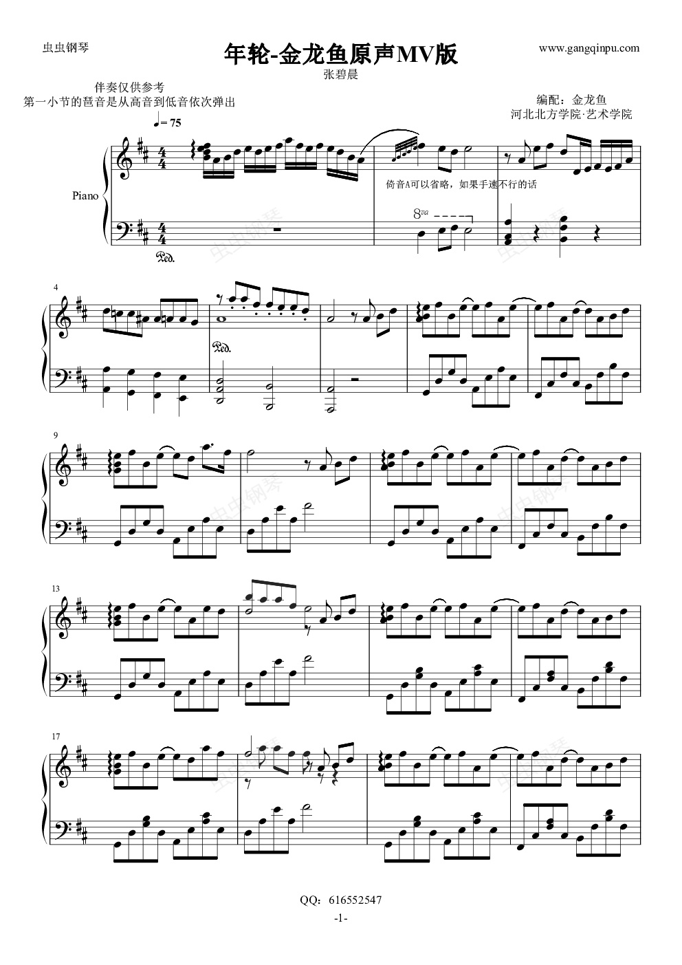 钢琴谱:年轮原版钢琴独奏金龙鱼