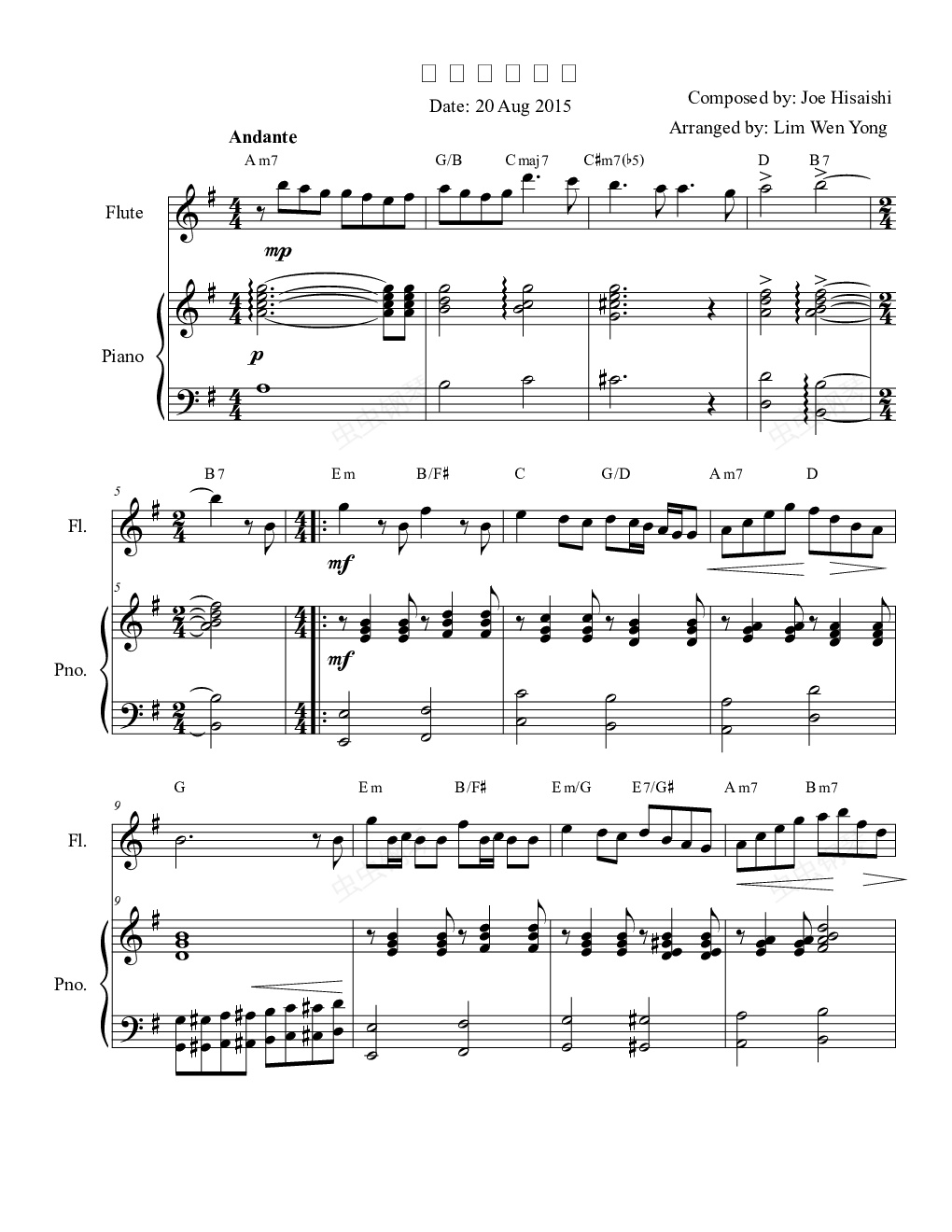 钢琴谱:海の見える街(长笛与钢琴伴奏)