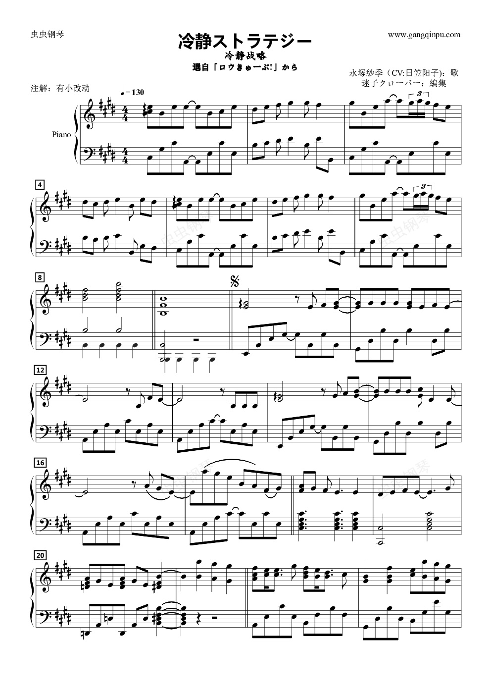 钢琴谱:冷静ストラテジー
