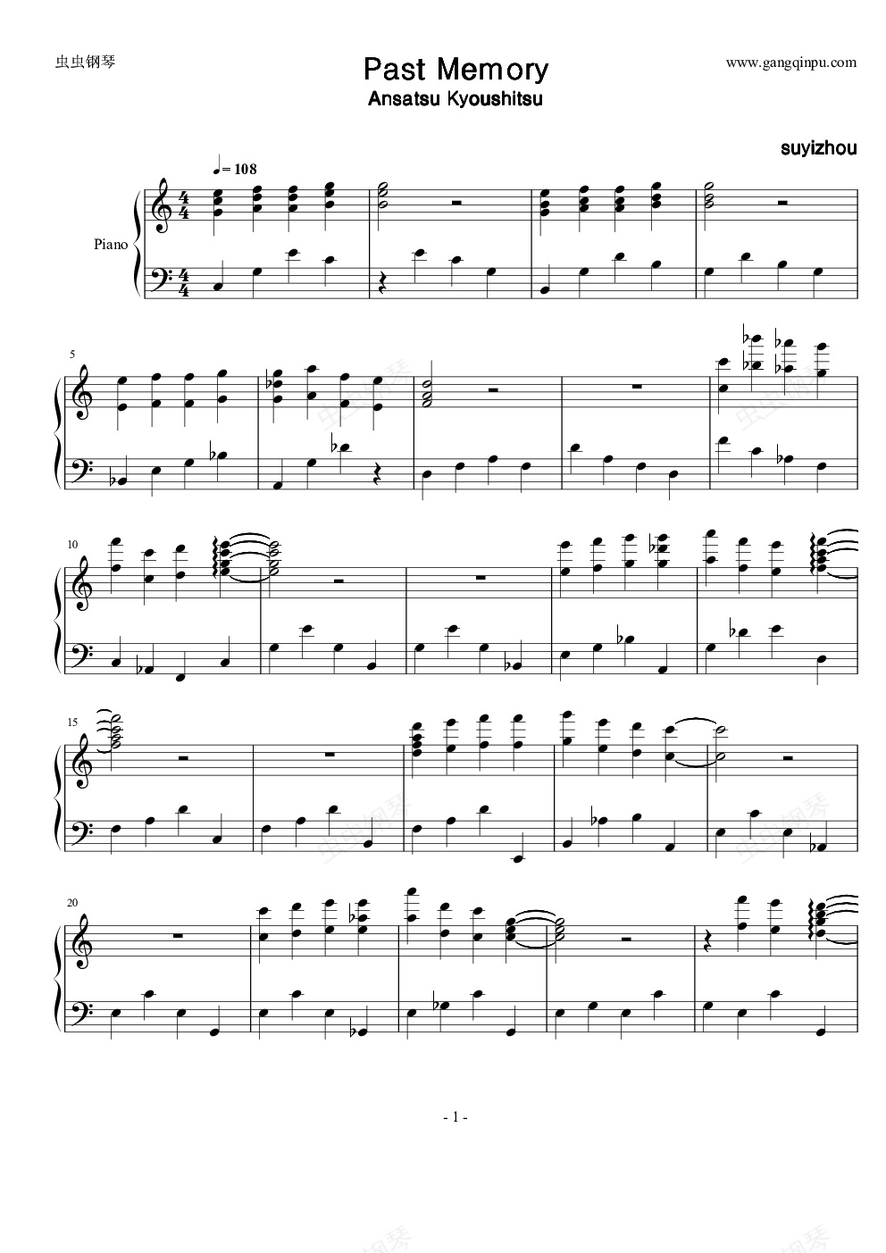 钢琴谱:Past Memory-暗杀教室