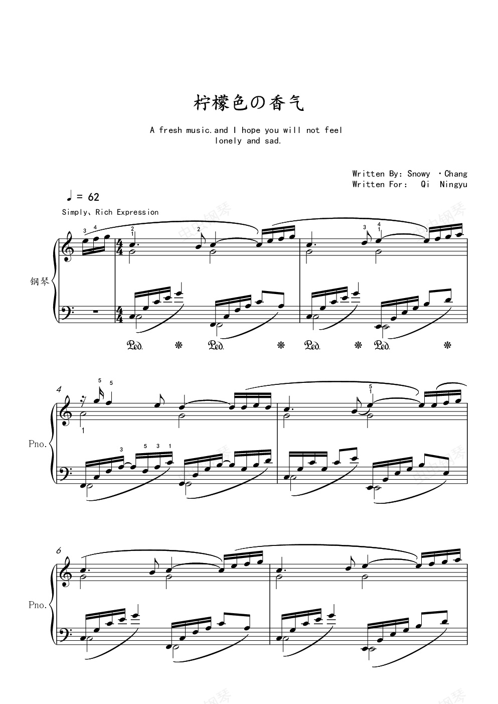 钢琴谱:柠檬色の香味