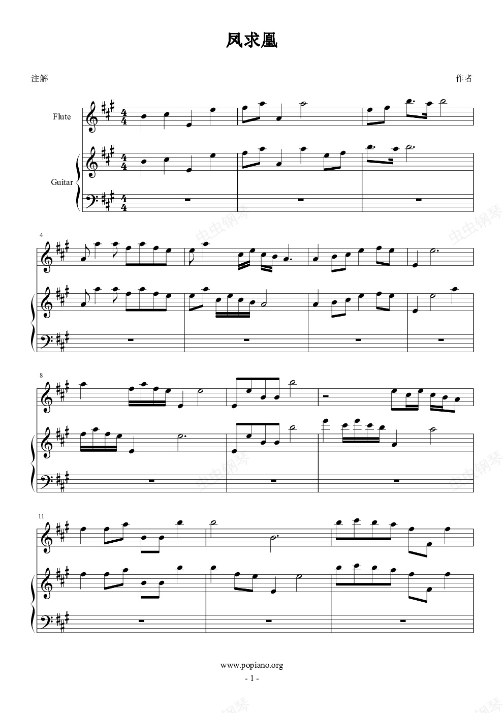 钢琴谱:凤求凰琴箫合奏