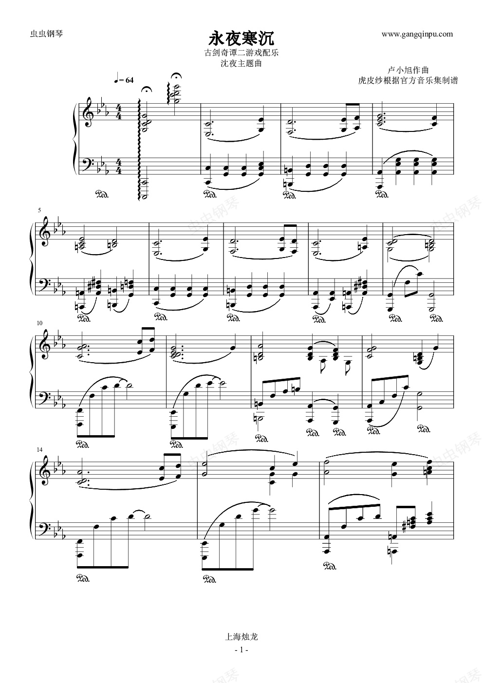 钢琴谱:古剑奇谭二 永夜寒沉(官方版)