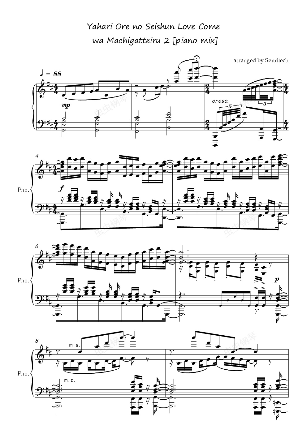 钢琴谱:我的青春恋爱物语果然有问题续OP&ED钢琴改编