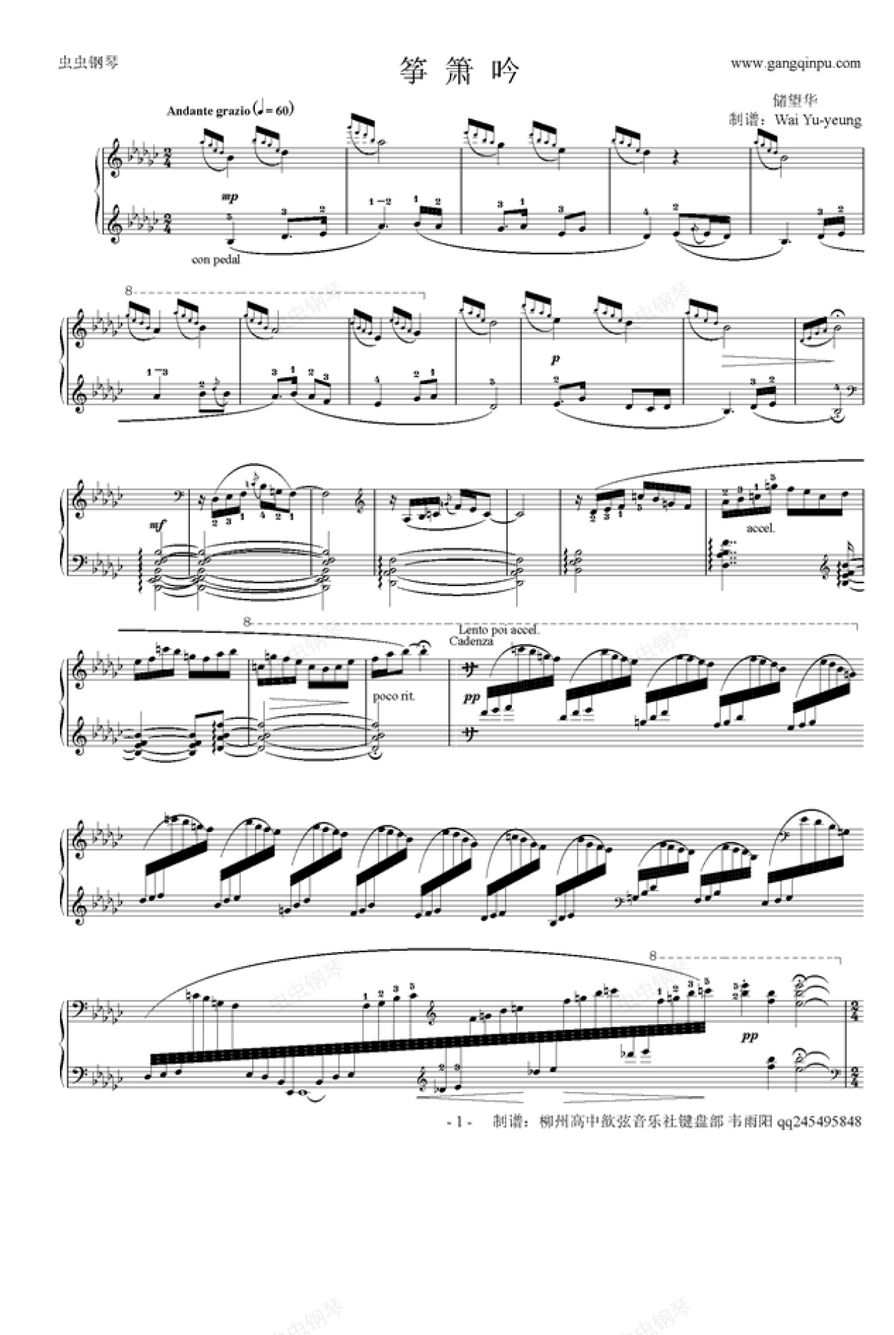 钢琴谱:筝箫吟 详细指法版