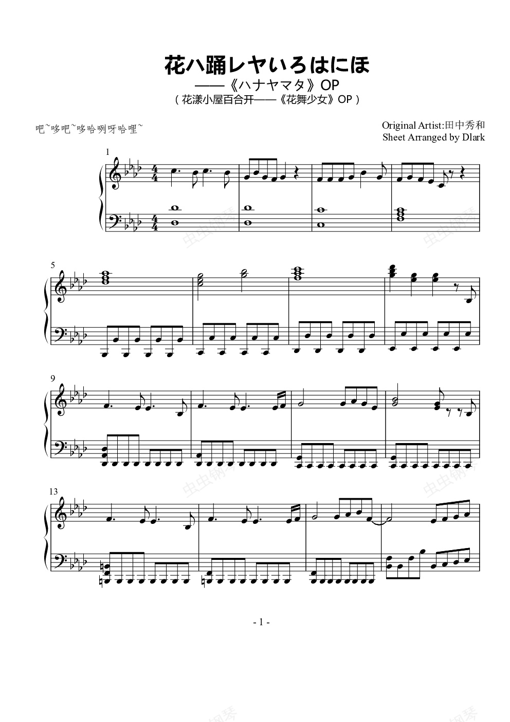 钢琴谱:【花舞少女】OP花ハ踊レヤいろはにほ