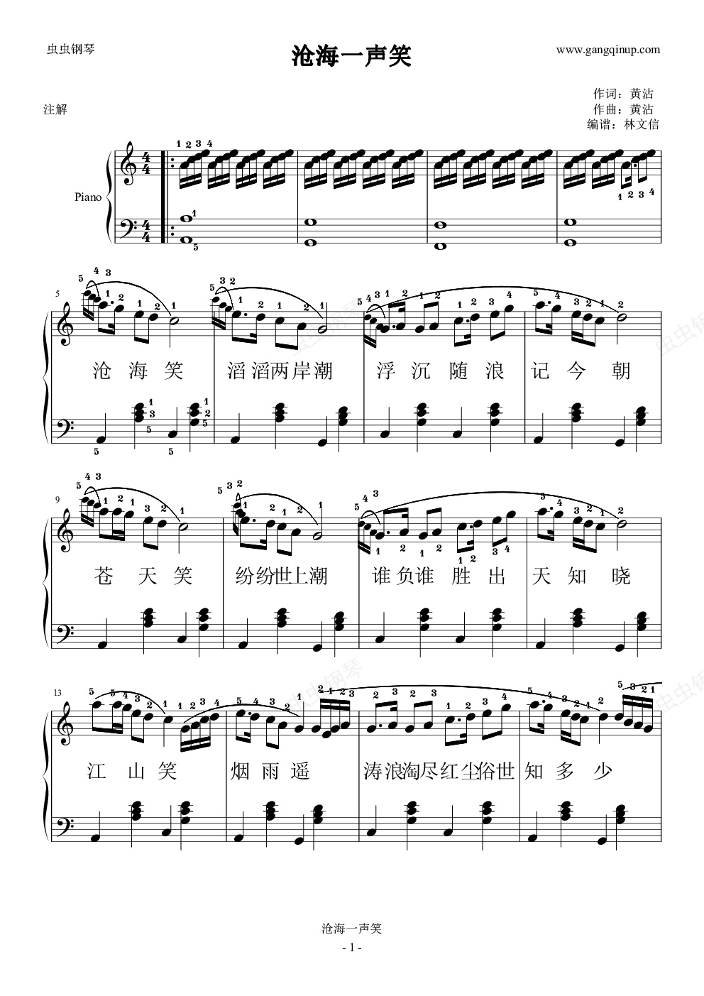 钢琴谱:沧海一声笑