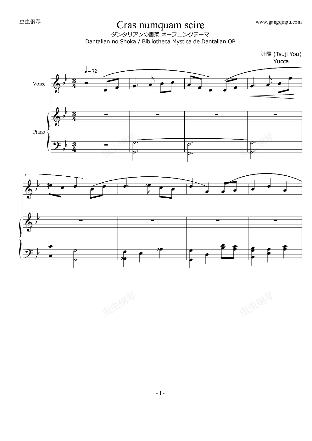 钢琴谱:【丹特丽安的书架】OP(总谱) 无法预知的明天(TV版) Cras numquam scire (Bibliotheca Mystica de Dantalian