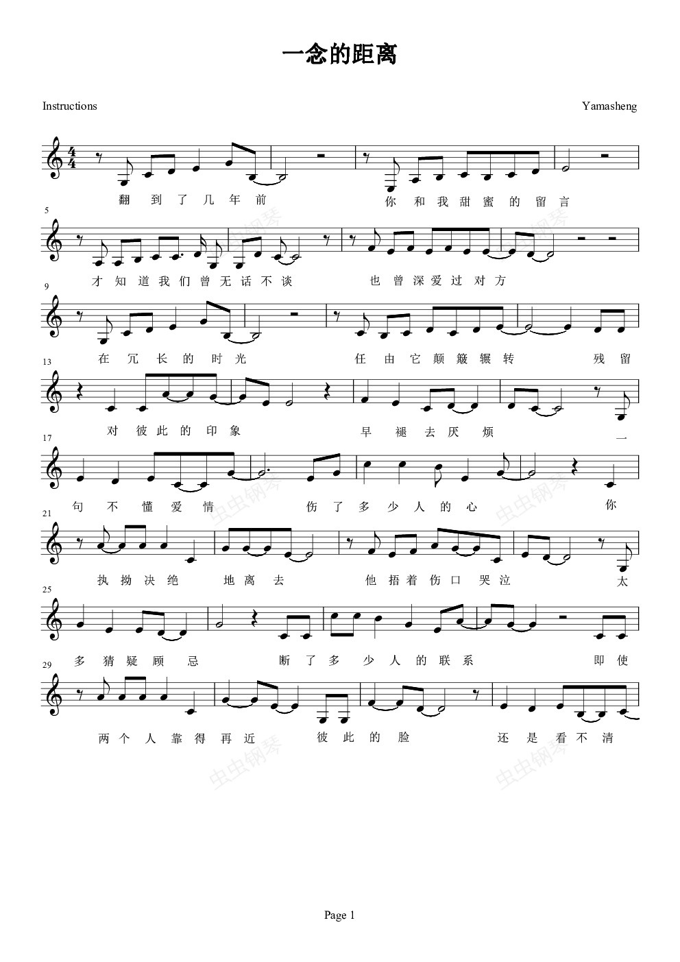 钢琴谱:一念的距离