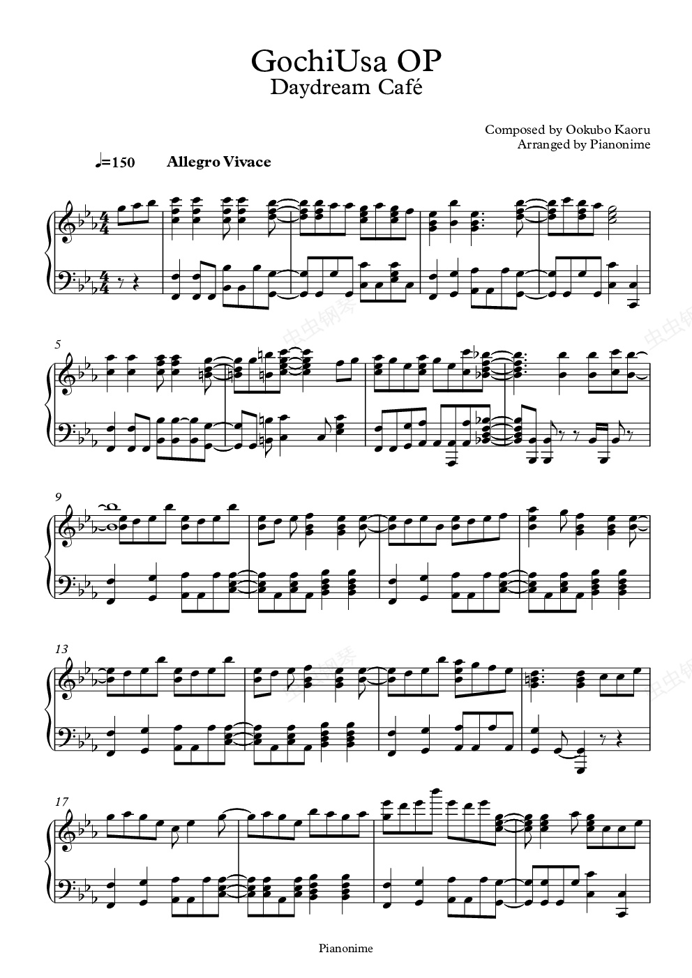 钢琴谱:DayDream Cafe (白日梦咖啡店)- 请问你要来点兔子吗 op