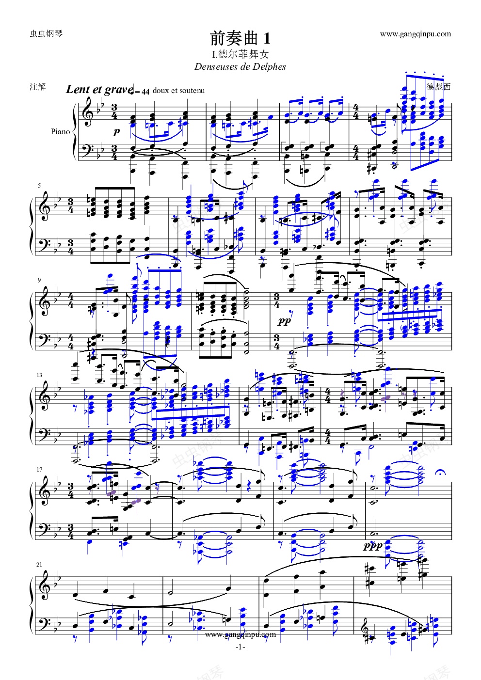 钢琴谱:德彪西-前奏曲 1-德尔菲舞女