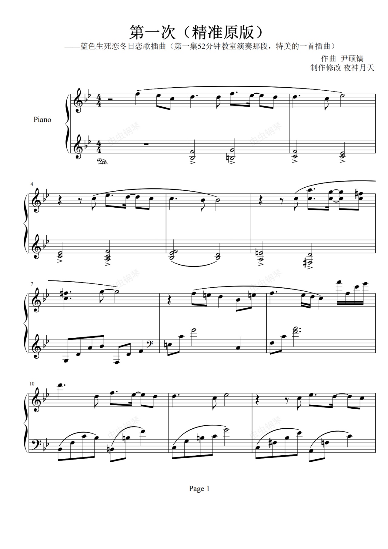 钢琴谱:冬日恋歌插曲(第一次)原版
