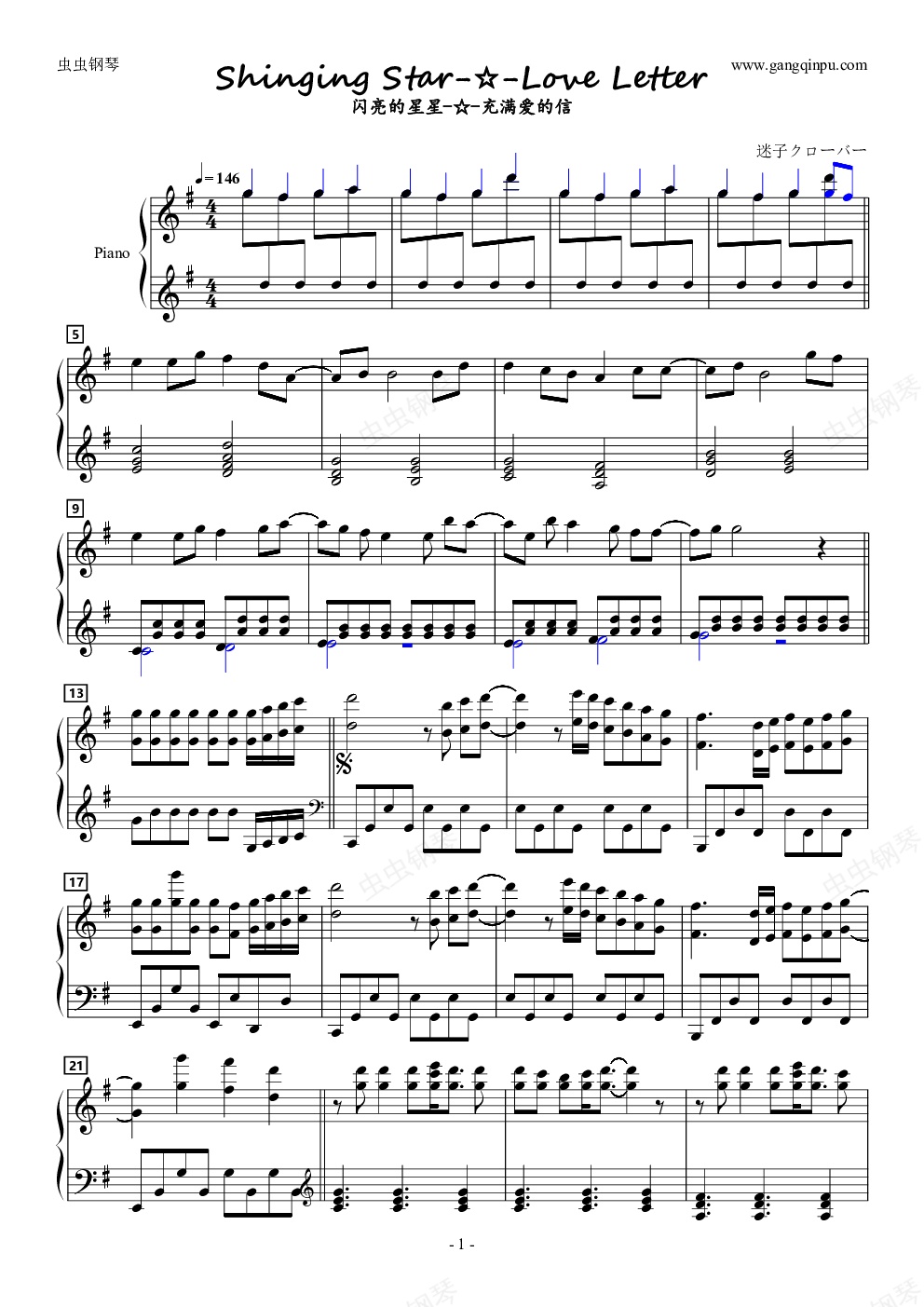 钢琴谱:Shinging Star-☆-Love Letter