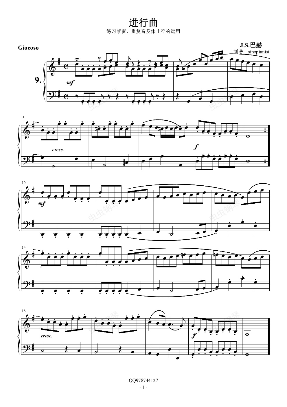 钢琴谱:巴赫初级钢琴曲集09进行曲