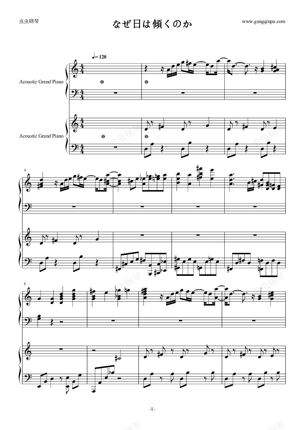 钢琴谱:なぜ日は傾くのか