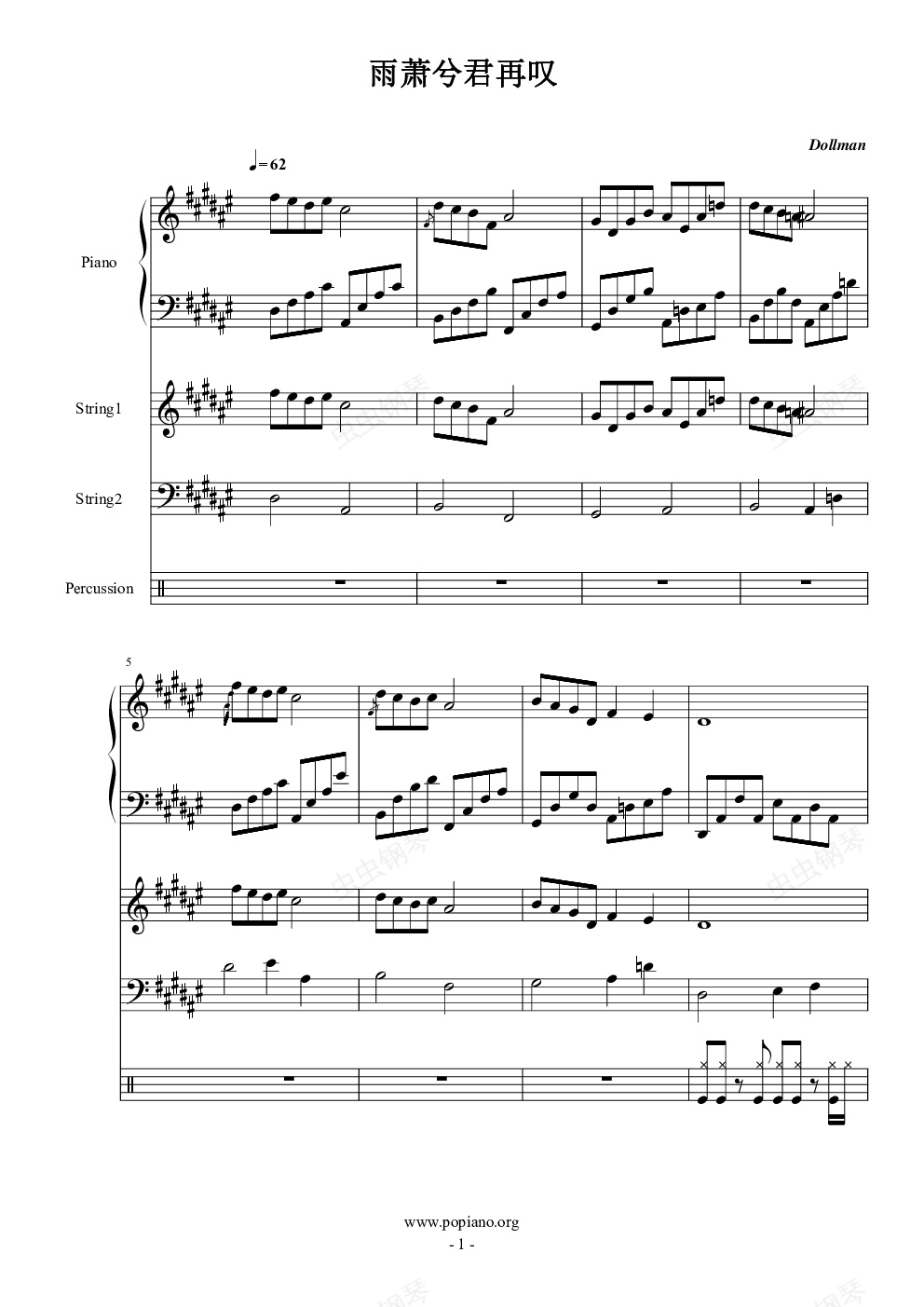 钢琴谱:雨萧兮君再叹(总谱)