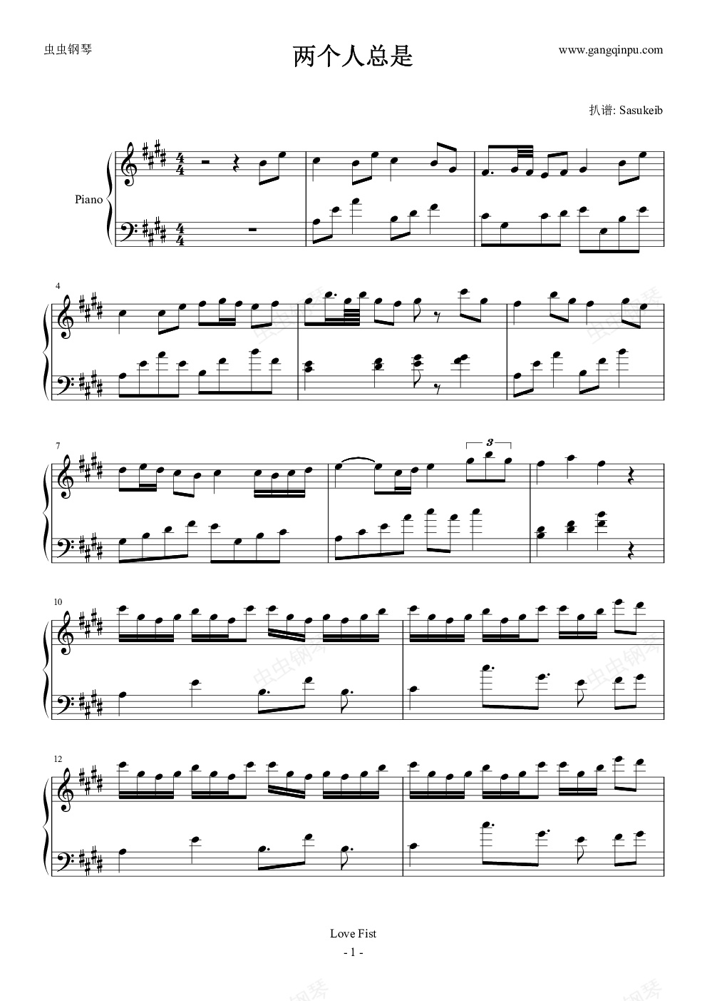 钢琴谱:ふたりはいつも (两个人总是)