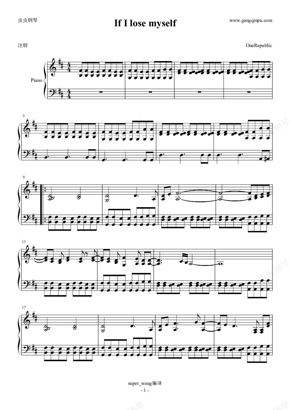钢琴谱:If I Lose Myself