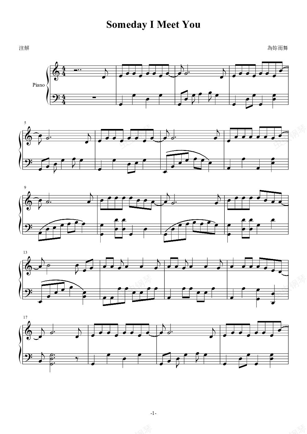 钢琴谱:Someday I Meet You