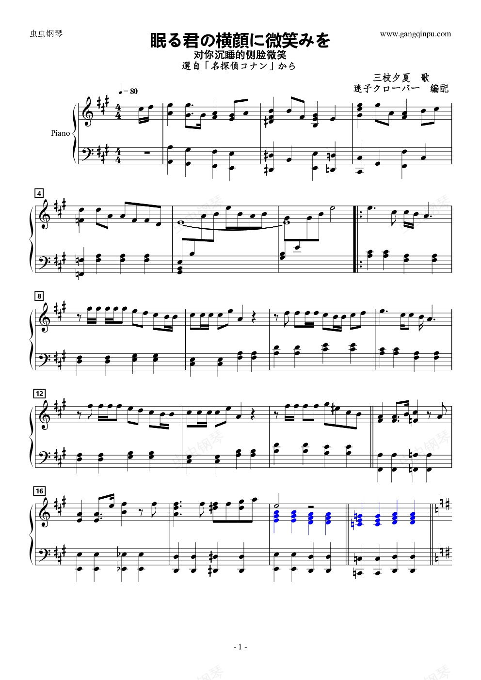 钢琴谱:「名探偵コナン」眠る君の横顔に微笑みを