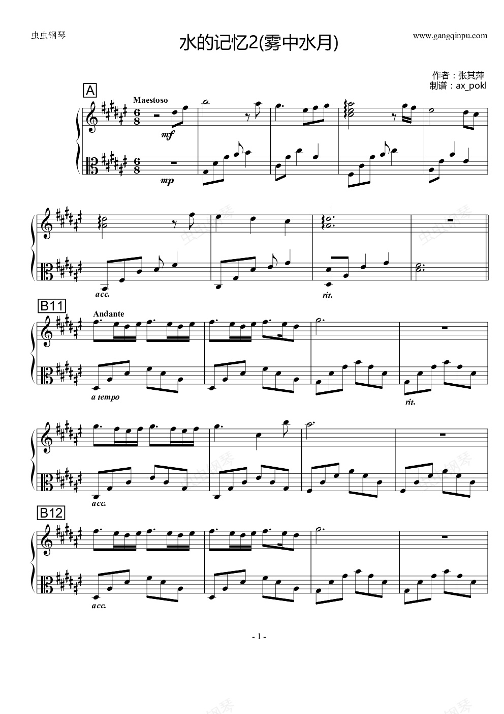 钢琴谱:水的记忆2(雾中水月)